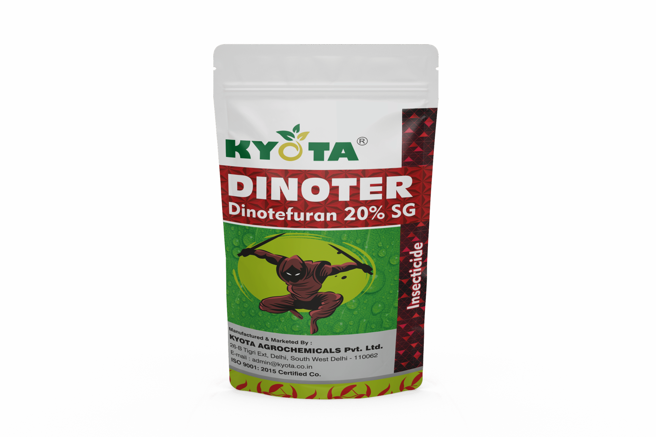 DINOTER, with Dinotefuran 20% WG, is a systemic insecticide for paddy, effectively controlling brown plan hopper, aphids, jassids, thrips, and whiteflies for healthier crop growth.