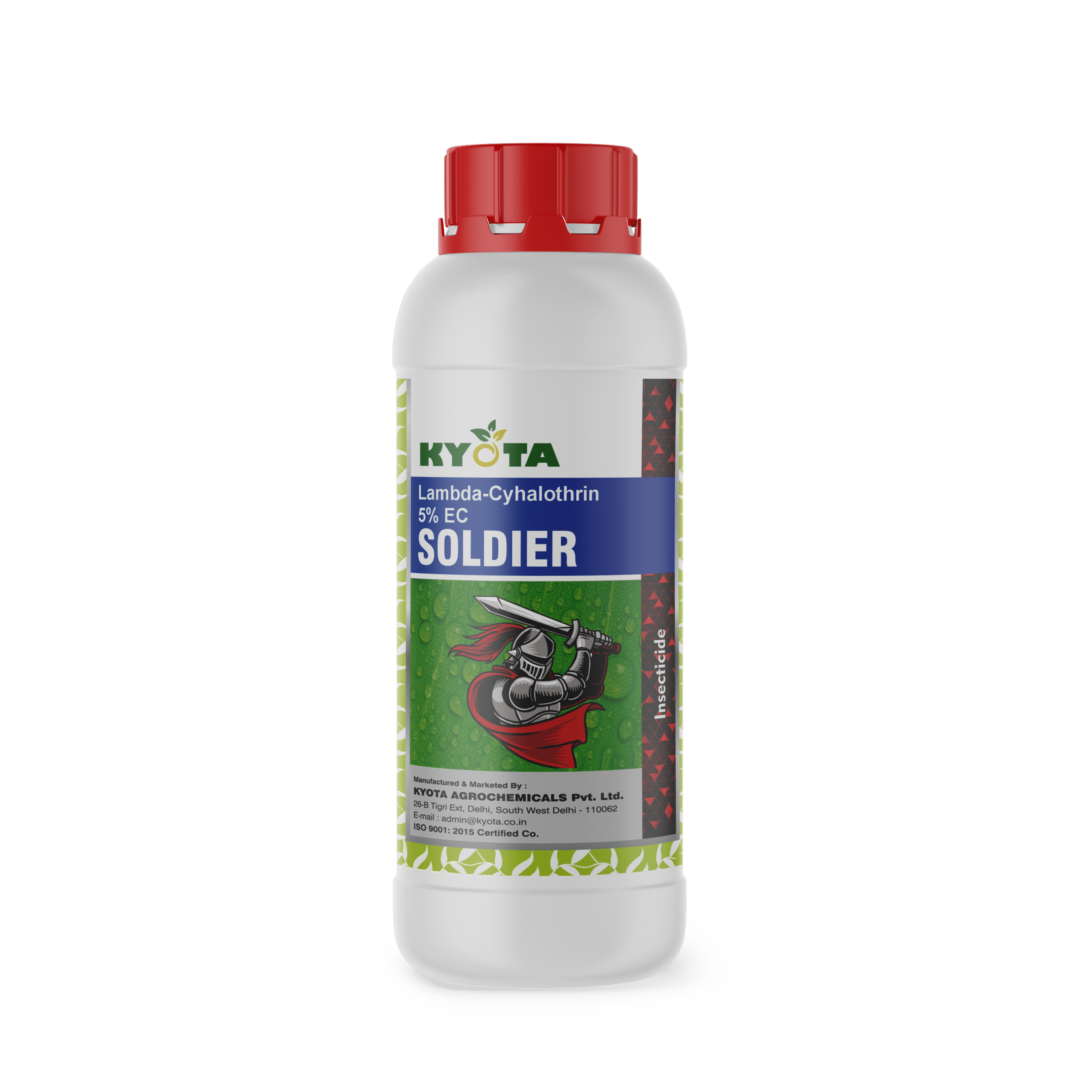 SOLDIER, with Lambda Cyhalothrin 5% EC, is a contact and stomach action insecticide providing effective control of grasshoppers, locusts, and armyworms across major crops.